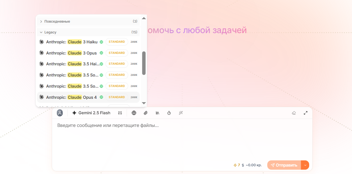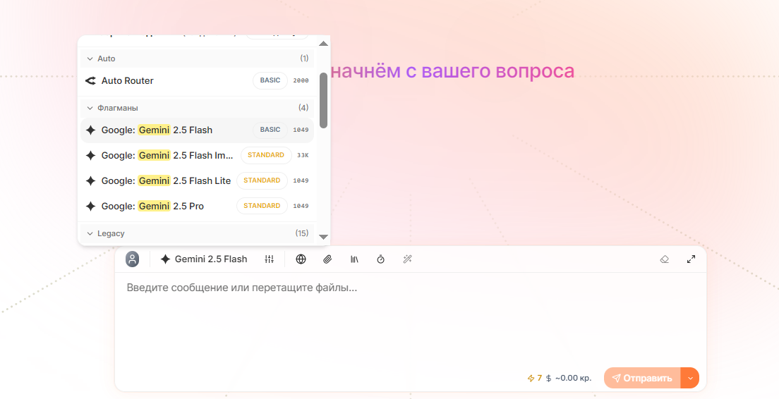 У нас в Super Intellect доступно использование несколько нейромоделей в одном чате для всех пользователей. Работа с ними не просто передаёт ваш вопрос наверх одной нейромодели AutoRouter, а быстро решает, кого из своих помощников позвать на помощь. У каждого из них — свой характер и свои таланты.