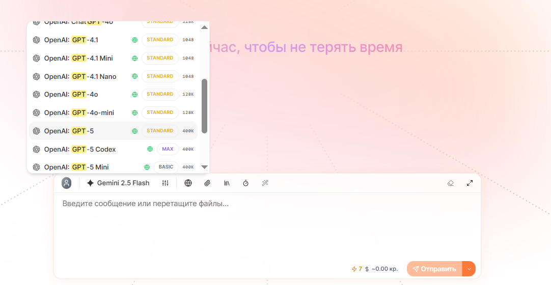 Чаще всего он обращается к условному GPT-5 (или той серии 5 поколения, что сейчас актуальна). Это как надёжный мастер на все руки. Если задача сложная, многоступенчатая, где нужно держать в голове несколько условий, писать код или выстраивать ответ в строгом формате — это к нему. Он не подведёт, когда нужна структура и логика.
